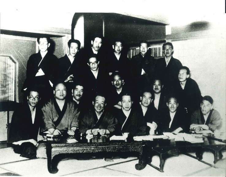(中列左から)衣笠貞之助、小津安二郎、井上金太郎、溝口健二
