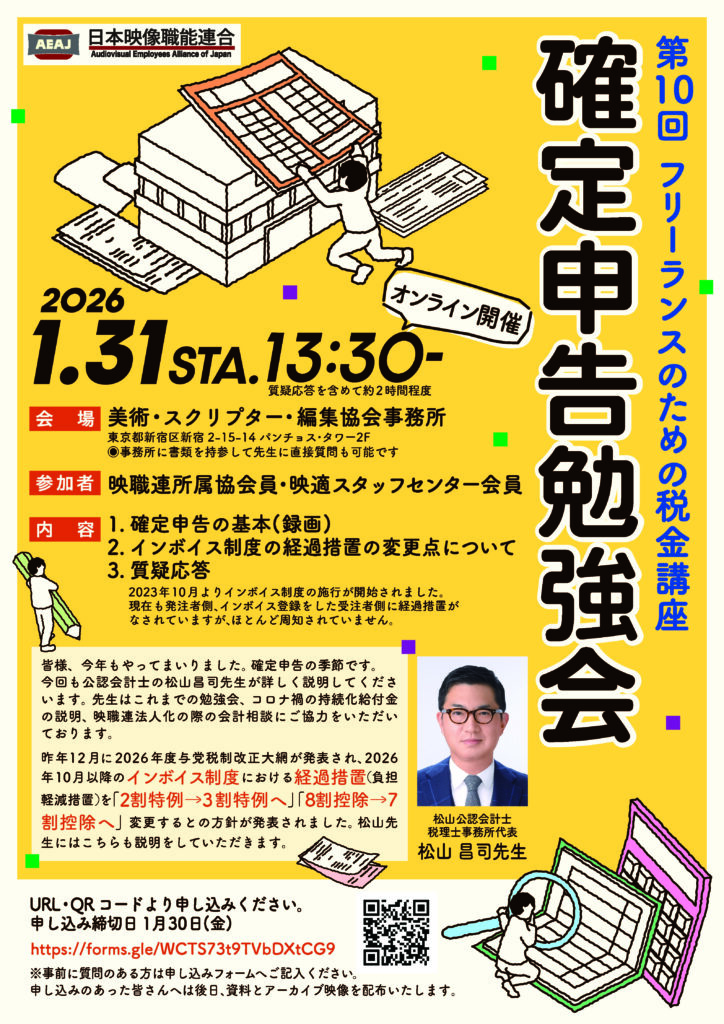 映職連 【第10回フリーランスのための確定申告勉強会】のおしらせ